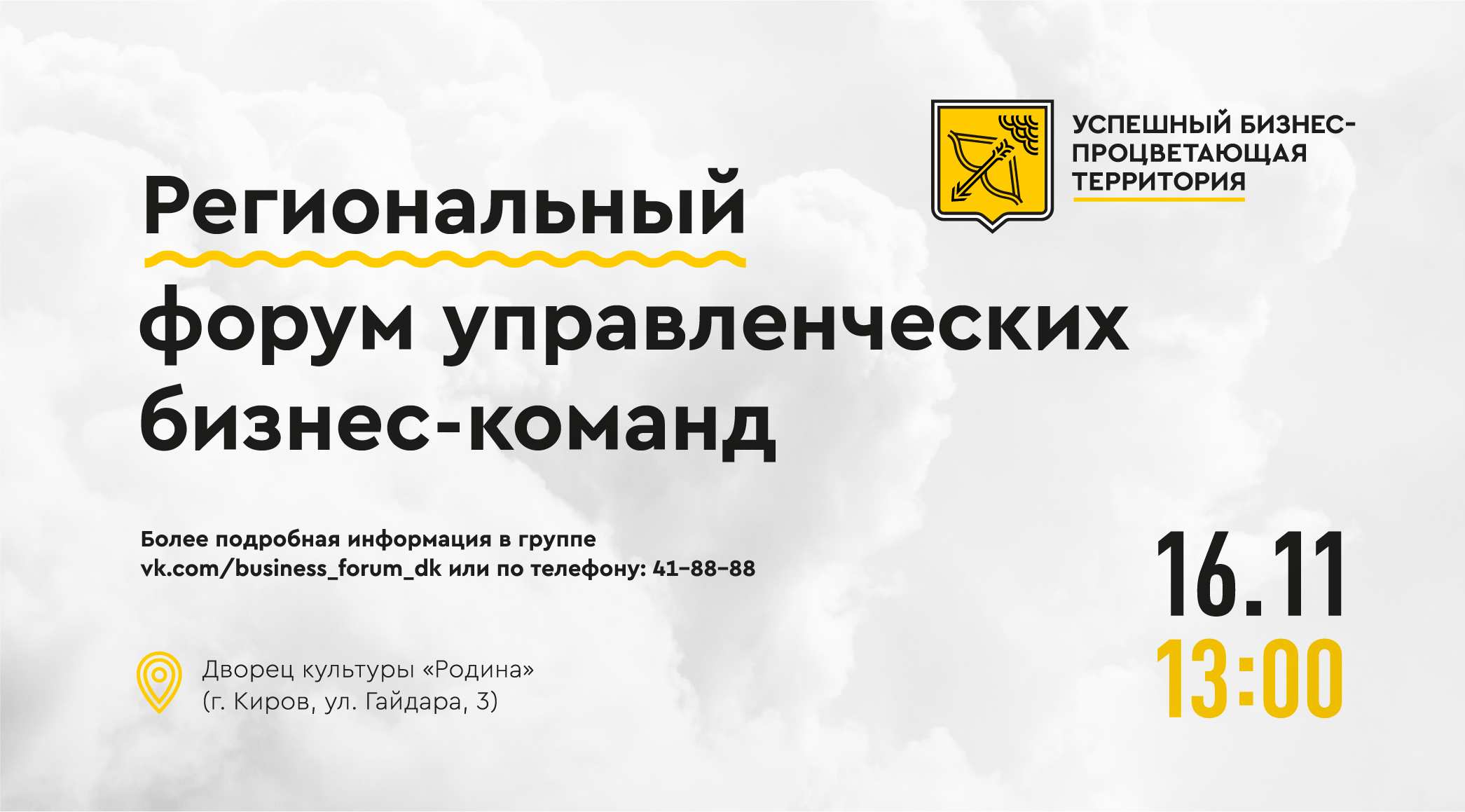 16 ноября первые лица компаний города и области соберутся в ДК "Родина" и поделятся своим колоссальным опытом ведения бизнеса на «Региональном форуме управленческих бизнес-команд»!