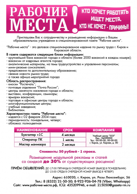 С газетой «Рабочие места» сотрудничают ведущие организации не только Кировской области, но и других регионов России.